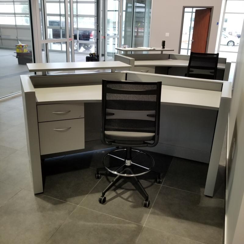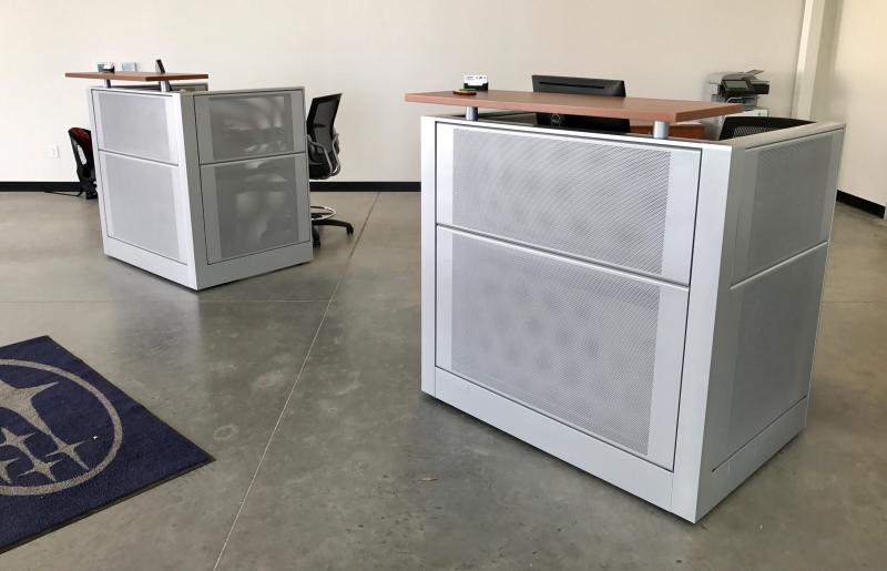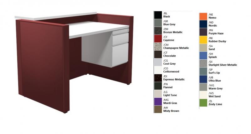 STEEL SERVICE PODIUMS WITH LAMINATE TOPS - PAINT COLOR OPTIONS ARE FOR THE STEEL PANELS & TRIM